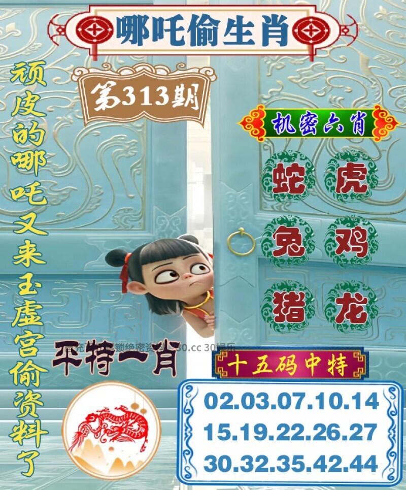 | 313期【解哪吒偷生肖】 解料:得寸直尺贪不厌,今期生肖定将军 机密六肖:蛇虎兔鸡猪龙 平特一肖:龙龙龙 |